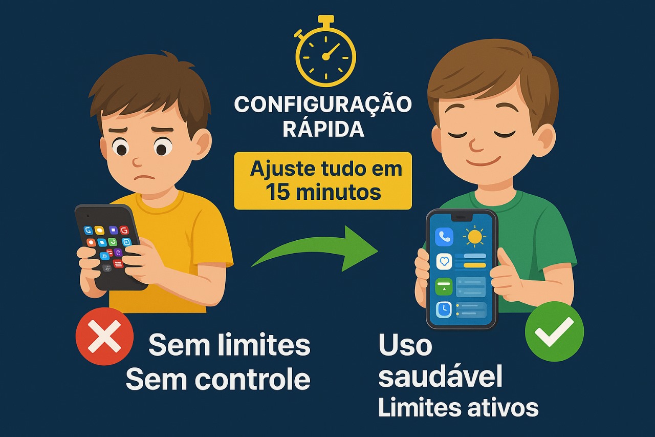 Automatize os limites e acabe com as discussões diárias. O celular obedece as regras, você não precisa policiar.